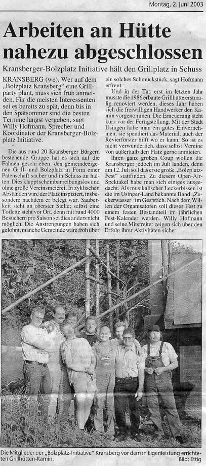 Einheimischen am 12. Juli auf eine gute Resonanz, denn das erste Kransberger