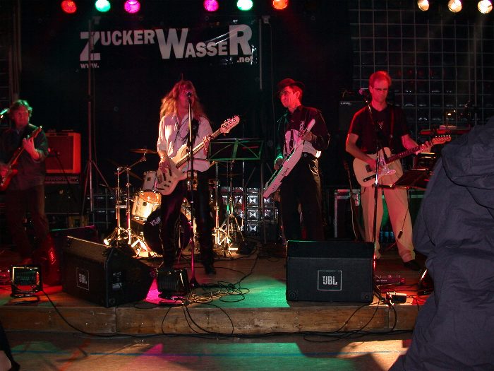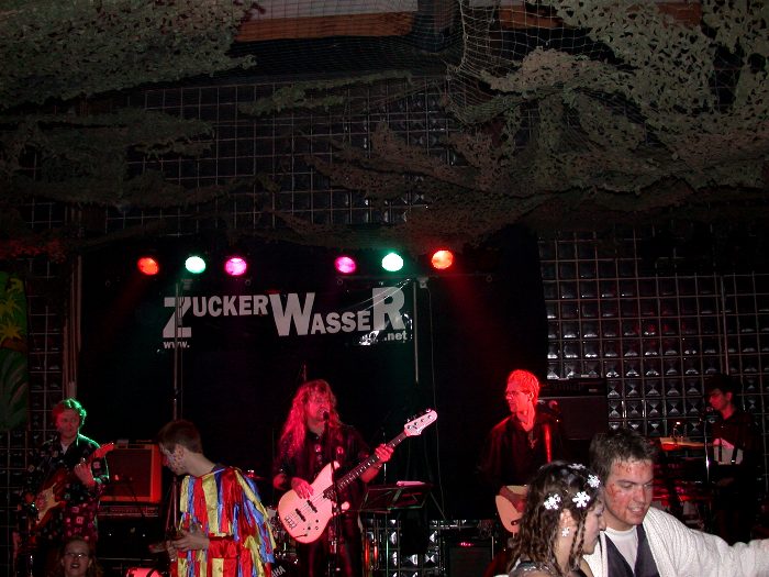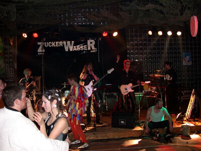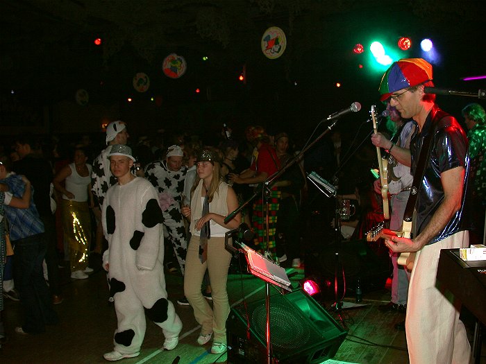 Spaß auf der Bühne und im tanzwütigen Publikum gehabt! Tolle Polonäsen, besonders mit Klaus und seinem transportablen Schlagzeug! (Ob die letzten schon ausgenüchtert sind?)